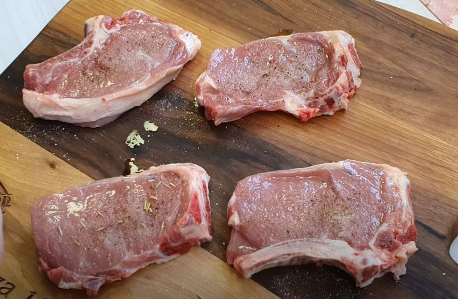 Meso začiniti sa obe strane : ulje, sol, biber, ružmarin. Dobro utrljati i ostaviti u frižider do upotrebbe