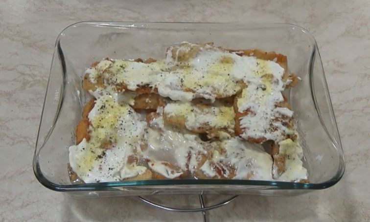 Šnicle izlupati čekićem, posoliti, uvaljati u brašno i ispržiti. Ispržene šnicle poređati u podmazanu vatrostalnu posudu. Za preliv pomešati kiselu pavlaku sa pavlakom za kuvanje i izgnječenim belim lukom. Prelivom premazati svaku šniclu. Na kraju posuti začinom i biberom. Sipati dva decilitra vode i staviti u zagrejanu rernu na 180 stepeni da se peče 30 minuta.