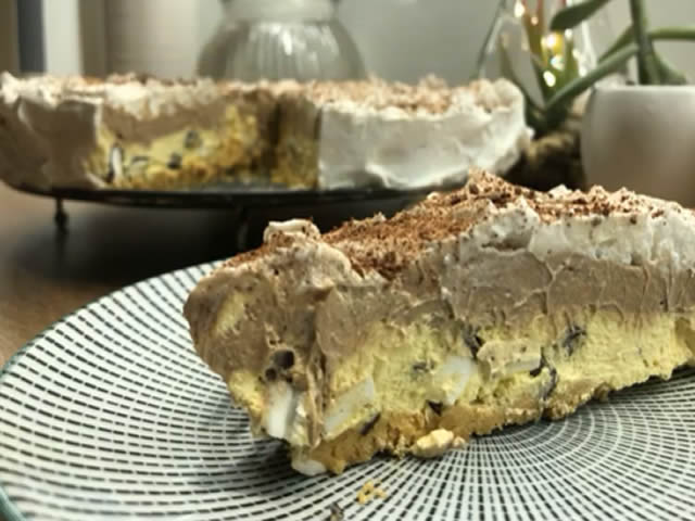 U 1/2 litra mlijeka umutiti 5 šlag krema od vanilije. Podijeliti smjesu na 3 jednaka dijela. U prvi dio staviti plazmu. U drugi dio isjeckati čoko bananice i u treći dio staviti 2 kašike Nutelle. Prvo se stavlja smjesa od kreme i plazme kao podloga, zatim smjesa sa čoko bananicama te potom smjesa sa Nutellom. Ukrasiti šlag pjenom. (Ja sam dodala i mljevenu čokoladu, vi možete preskočiti taj dio, svejedno će biti ukusna)