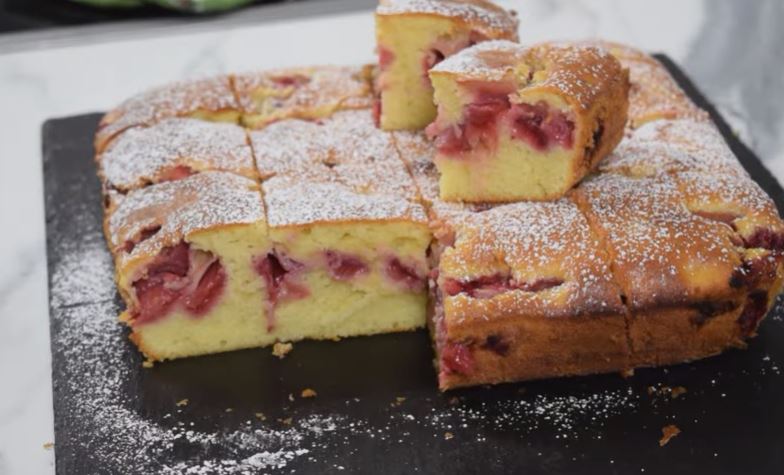 Voćni kolač sa jogurtom – najbrži i najmekši kolač, fantastičnog ukusa koji svakog oduševi. Par sastojaka koje uglavnom uvek imamo kod kuće i 10 minuta vremena je sve što je potrebno. Umesto jagoda možete staviti i neko drugo voće, ali jagode malo kise pa je lep kontrast. Višnje bi isto bile odlične.