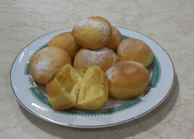 Testo premesiti i rastanjiti na 1,5 cm debljine. Seći krofne čašom. Staviti ih na papir za pečenje, pokriti i ostaviti da narastu. Preostalo testo premesiti i ponovo iseći krofne. Zagrejati ulje u tiganju. Kad narastu, pržiti krofne.