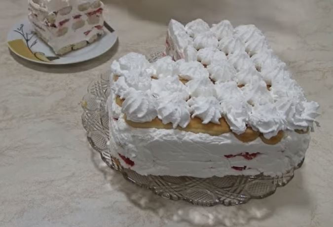 Umutiti slatku pavlaku. U umućenu pavlaku dodati šećer u prahu i nastaviti mućenje. Potom dodati krem sir i umutiti. Piškote umakati u mleko i ređati u kalup. Naneti sloj fila, pa sloj seckanih jagoda, pa opet sloj fila. Poređati drugi red piškota, nafilovati i poređati jagode. Naneti sloj fila preko jagoda. Poređati poslednji sloj piškota i ostaviti u frižider na dva sata da se dobro ohladi. Umutiti slatku pavlaku i šećer. Kada se torta izvadi iz kalupa, ukrašava se po želji. Kalup je kvadratnog oblika stranice 22 cm.