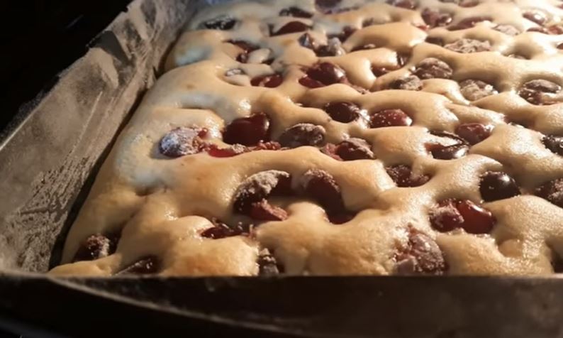 Belanca izmiksirati i postepeno dodavati šećer, zatim postepeno dodavati žumanca. Dodati ostale sastojke. Sjediniti smesu, i presuti u pleh za pečenje. Preko trešanja posuti griz i staviti ih u smesu. Peći na 180 stepeni 25min. Po želji posuti prah šećerom. Prijatno!