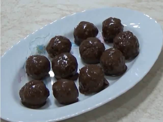 Izmrviti napolitanke. Dodati lešnike i krem i sve dobro sjediniti. Smesu staviti u frižider na pola sata da se stegne. Od smese napraviti kuglice. Kuglice umočiti u glazuru od čokolade.