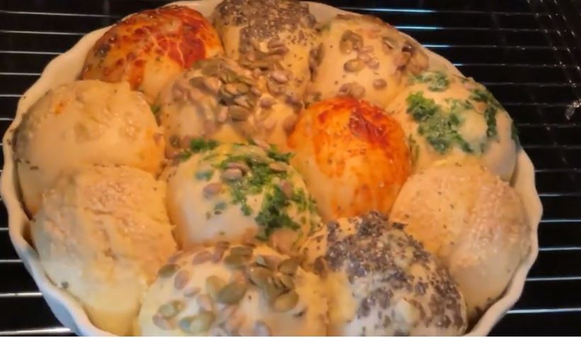 Možete upotrijebiti sve što želite za posipanje hljeba. Ovdje se koristi naribani parmezan, sjeme sezama, nasjeckani svježi persun, mješavina paprike i biljaka . Ali možete koristiti i druge mješavine bilja, sira i začina.