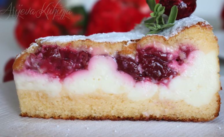 Lijep pozdrav dragi moji. Danas spremamo kolač ili pitu sa vanilijom i višnjama. Divna je, spolja prhka, unutra kremasta i sočna, sa osvježavajućim okusom višanja, sva se topi u ustima. Ako volite višnje i vaniliju ovaj će vam se kolač sigurno svidjeti. Mjera nam je čaša od 200 ml, ako budete mjerili većom čašom obavezno koristite i kalup odgovarajuće veličine jer je ova moja smjesa za kalup prečnika 26 cm. Ako budete pravili u četvrtastoj tepsiji najbolje je da koristite dimenzije 32 x 22 cm ili sličnu. Ako ne volite višnje možete koristiti i fil od maka kojeg ste poparili sa malo mlijeka, ili narendane izdinstane jabuke, breskve, marelice…. Ili bez dodataka, samo sa vanilijom. Ja sam u tijestu koristila mješavinu putera i ulja, možete koristiti samo puter ili samo ulje. Obavezno ga dobro ohladite prije sječenja u suprotnom će se kreme razliti. Nadam se da će vam se svidjeti 🙂