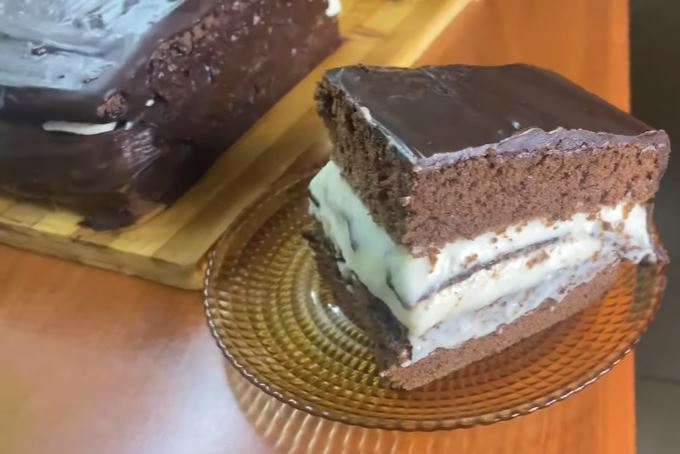Sastojke za koru sjediniti i peći 20-25 min. na 180 stepeni. Kada se ispeče preseći na dva dela. Umutiti fil pa filovati prvu koru, zatim naneti čokoladu pa fil pa koru. Odozgo preliti čokoladom. Prijatno!