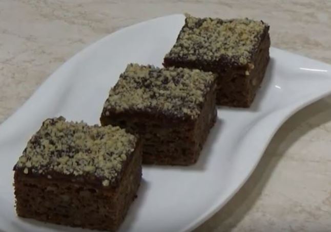 Vruć kolač premazati džemom i posuti mlevenim orasima. Ostaviti da se ohladi.