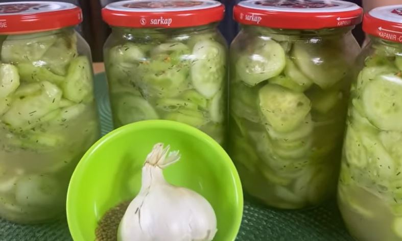 Krastavce dobro oprati, oljuštiti i iseći na kolutiće. Zatim dodati sirće, ulje, šećer, so i mirodjiju i lepo promešati. Ostaviti pola sata. Nakon toga prebaciti u tegle. Dodati beli luk i slačicu po ukusu. Izvršti pasterizaciju. Prijatno!