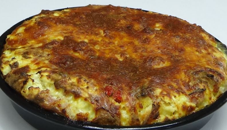 Kad poređate naizmenično sve sastojke kao na video receptu i nalijete prelivom ostavite da odstoji 30min. a onda pečite u zagrejanoj rerni na 180c/30min.Dok lepo ne porumeni.