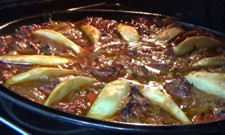 Pozdrav dragi prijatelji poštovane domaćice i domaćini. Donosim vam stari recept Juga Srbije koji se u prošlom veku služio po kafanama.Ja sam malo izmenila s obzirom da nisam mogla pronaći skramu ili trbušnu maramicu u kojoj su se svi ovi sastojci urolali pa tako pekli. Ovo ovako pripremljeno više podseća na neki sataraš sa butkico pa sam ga zato tako i nazvala. Nadam se da mi neće zameriti stari majstori na izmeni završnog dela recepta. Jedno vam samo mogu reći da je ovo jedno zaista veoma ukusno jelo pa vam stoga preporučujem da ga isprobate.
