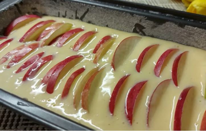 Zdravo svima.Vreme je da probate nalepši kolač sa jabukama.Ovaj izuzetno brz i lak recept delim sa vama.Ako kući imate par jabuka neka se širi miris ukusnog kolača koji se topi u ustima.Stigla je jesen i pravo je vreme za jednu ovakvu poslasticu,obradujte svoju porodicu.Prijatno.