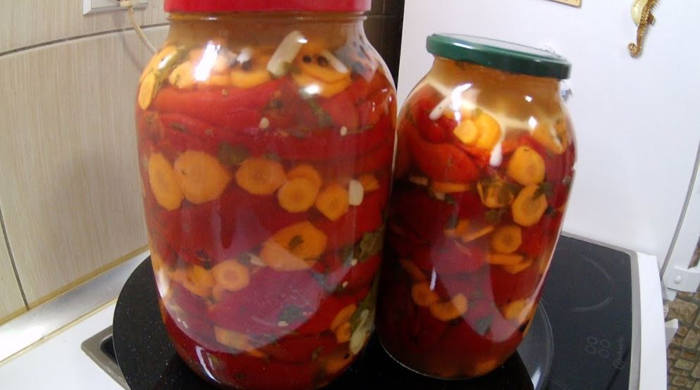 Nakon 24 sata poređajte lepo u tegle dodajući beo luk, biber i lovor. Tečnost koju je paprika ispustila zalijte tegle zatvorite i odložite u ostavu.