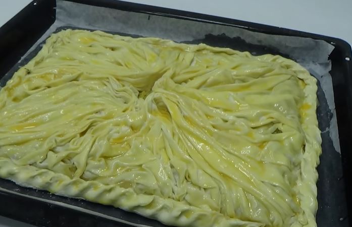 Pripremljenu pitu premazati 1 jajetom sa 2 kašike ulja i 2 kašike mleka.Peći u zagrejanoj rerni na 220c/20min.
