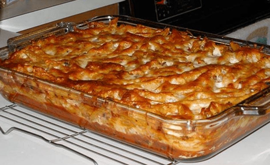 Tjesteninu skuhajte po uputama na pakovanju pa ocijedite. Tepsiju namažite puterom, ubacite tjesteninu, sir i šunku. Jaja umutite sa mlijekom i prelijte preko tjestenine. Pospite parmezanom i pecite u rerni zagrijanoj na 220 stepeni 45 minuta.