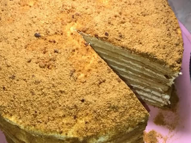 Medena torta | Medovik je desert koji je poznat po svom dugotrajnom vremenu pripreme. Sastoji se od slojeva biskvita s krem punjenjem i često je prekriven orasima ili mrvicama od ostataka torte. Dok se tanki slojevi stvrdnjavaju nedugo nakon izlaska iz pećnice, vlaga punjenja ga s vremenom ponovo omekšava. Postoji mnogo recepata i varijacija ovog kolača, ali glavni sastojak je med koji mu daje karakterističan okus.