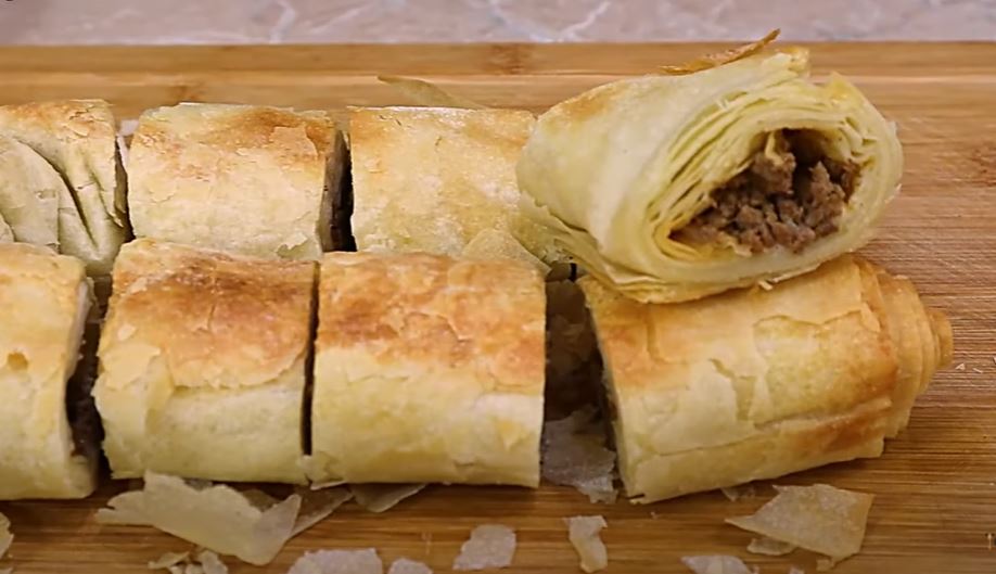 Recept za brzi burek, potkovicu, sa mesom. Lisnata pita od gotovih kora.