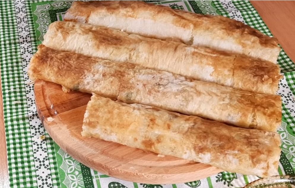 Začiniti po ukusu. Pa sjediniti sve da se dobije fil. Prvu koru svaku koru premazati uljem i mineralnom vodom, a preko druge staviti fil i uviti u rolat. Ponavljati proces dok ima materijala. Peći na 180 stepeni 20-25min.