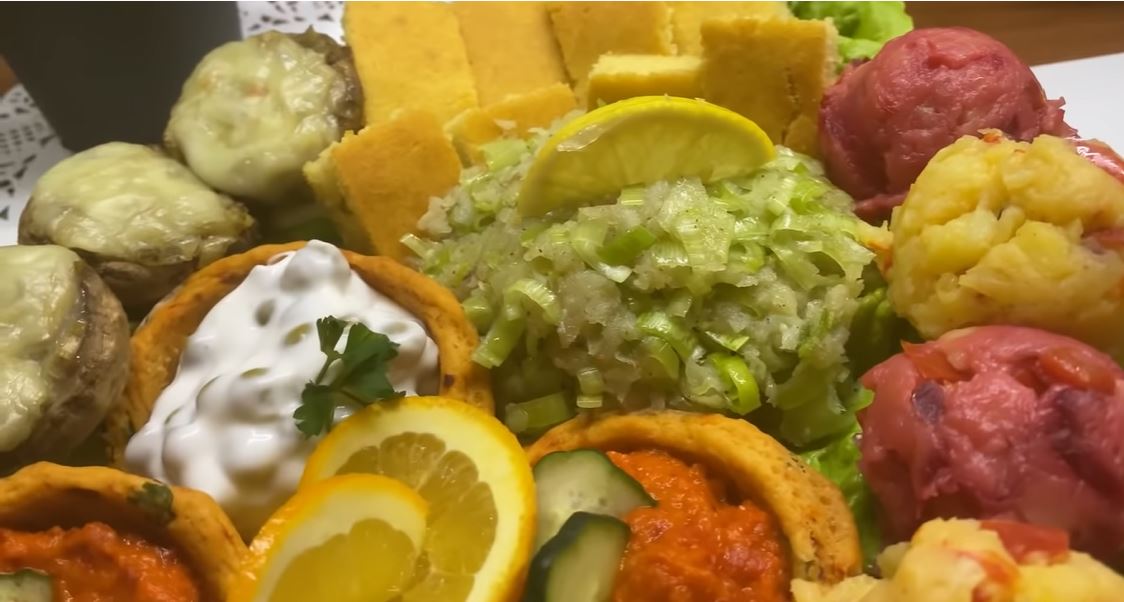 U malo ulja propržiti crni i crveni luk i kiselu papriku. Dodati tri kuvana krompira i sve lepo izmrviti i sjediniti. Ubaciti 15gr posnog margarina i malo suvog začina. Podeliti smesu i u jedan deo dodati rendanu cveklu. Praviti kuglice.