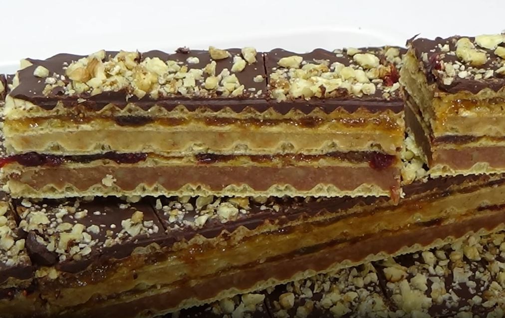 Posipajte krupno mlevenim orasima.