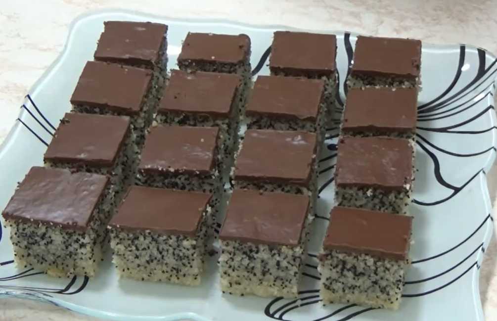 Pomešati suve sastojke: brašno, prašak za pecivo, griz, mak i šećer. Dodati ulje i kiselu vodu i sve dobro izmešati. Pleh veličine 20×30 cm obložiti papirom za pečenje i sipati smesu. Kolač peći na 180 stepeni od 25 do 30 minuta. Istopiti čokoladu sa malo ulja i preliti preko prohlađenog kolača.