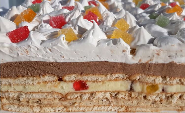 Ukusna, kremasta, izdašna torta koja se brzo priprema bez pečenja kora. Torta sa keksom, orasima i žele bombonama, po ukusu se ne razlikuje od torti koje nisu posne.