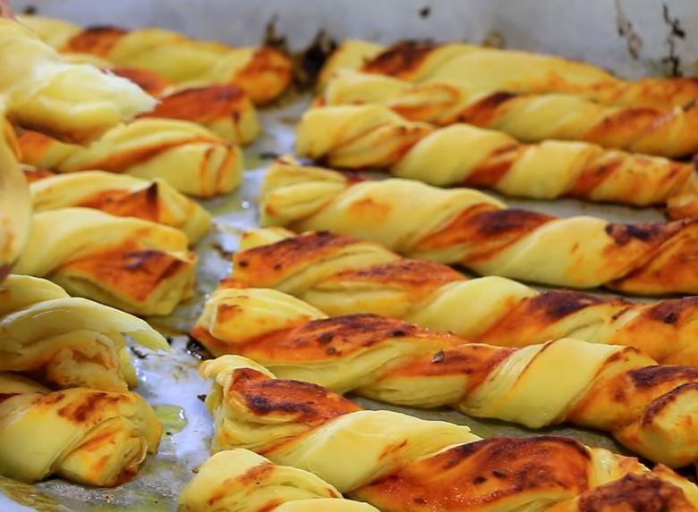 Razvucite oklagijom i premažite kečapom u koji ste umešali začine. Isecite trake i uvijte štapiće kako je prikazano u videu. Ređajte na tepsiju obloženu pek papirom. Pecite u zagrejanoj rerni na 200 stepeni oko 20 minuta. Prijatno.