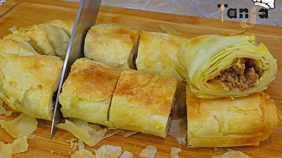 Recept za brzi burek, potkovicu, sa mesom. Lisnata pita od gotovih kora.