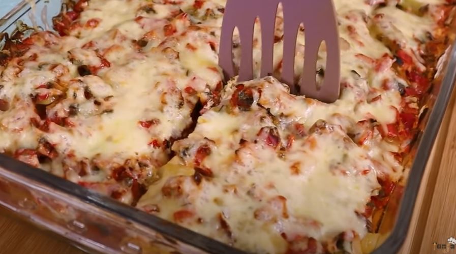 Svinjski vrat u marinadi, pečen u rerni. Recept za ukusan i brz ručak. Meso sa krompirom i povrćem, jednostavna i brza priprema.