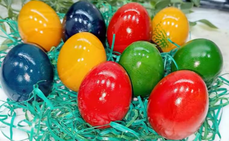 jaja skuvati a onda ih spustati u boju .. drzati do zeljene boje