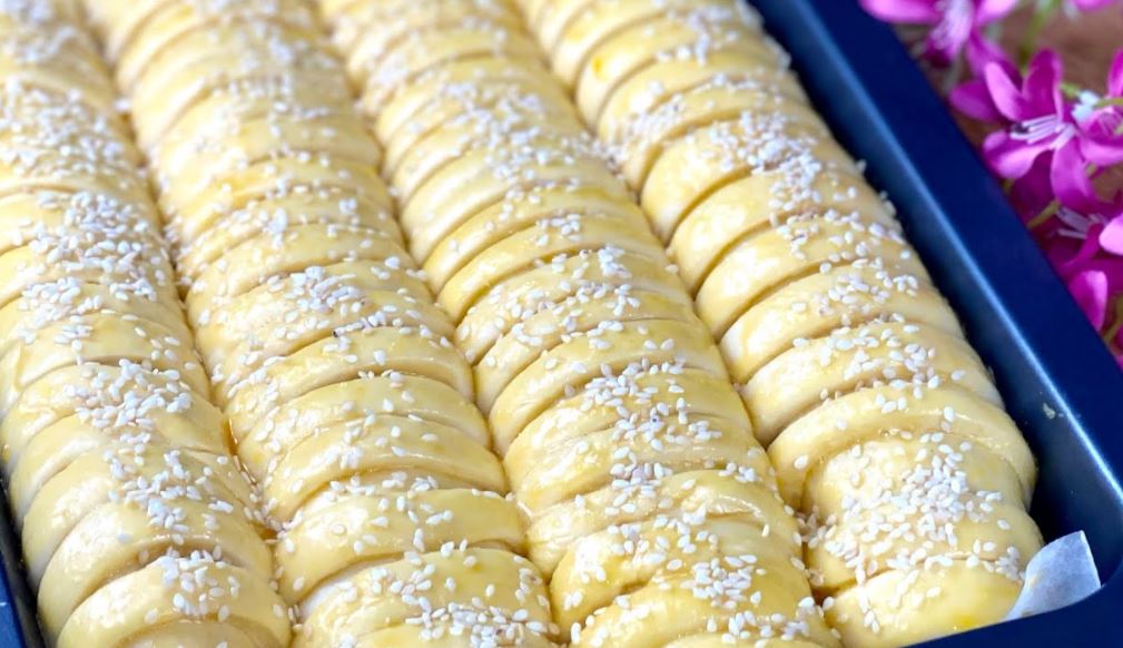 Priprema: Aktivirati kvasac, zatim umesiti glatko testo. Ostaviti da naraste, staviti fil i napraviti oblike. Premazati žumancem i posuti susamom. Peći na 180 stepeni 25 minuta. Prijatno!