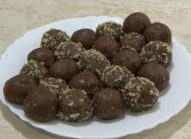 Izmešati orahe i šećer. Istopiti čokoladu i dodati u smesu. Dodati džem i kašiku vode i sve sjediniti. Od smese praviti kuglice. Po želji kuglice valjati u mlevene orahe.