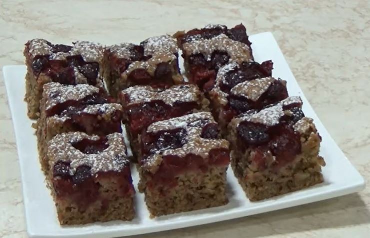 U kiselu vodu sipati šećer i mešati dok se šećer ne istopi. Dodati džem i mlevene orahe i izmešati. Prosejati brašno sa praškom za pecivo i umešati.