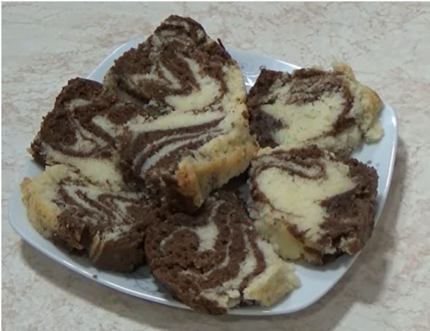 U činiju sipati vodu i ulje. Dodati šećer i vanilin šećer i promešati da se malo istopi šećer. Uz mešanje dodavati brašno pomešano sa praškom za pecivo. Smesu dobro umutiti, pa podeliti na dva dela. U jedan deo dodati kakao prah i umešati. Kalup za kuglov podmazati uljem. Naizmenično sipati smese u kalup. Staviti u zagrejanu rernu na 180 stepeni da se peče od 20 do 25 minuta.