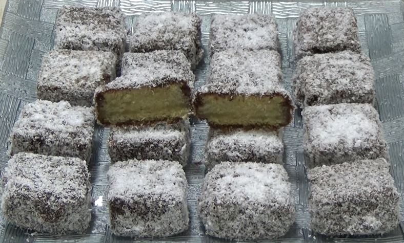 Koru iseći na kockice. Kockice potapati u preliv, pa uvaljati u kokosovo brašno. Čupavce ostaviti da se preliv ohladi i stegne.