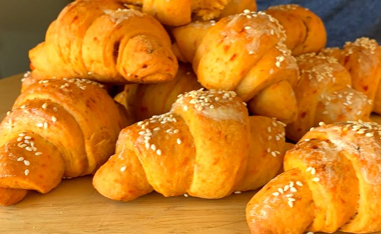 Odlične kiflice sa ajvarom, koje se veoma brzo i lako pripremaj. Kiflice možete premazati posnim majonezom ili uljem.