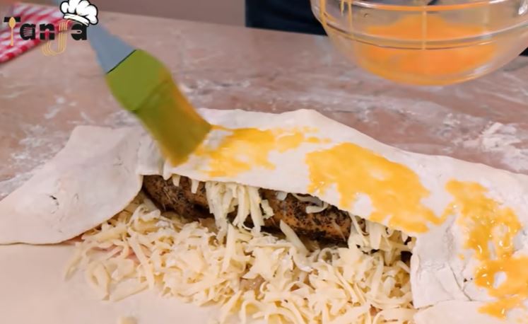 Svinjski file rolovan u lisnatom testu, sa šunkom, tvrdim sirom i lukom, iz rerne. Brzi recept za ručak ili večeru. Pogodan za svečani sto ili goste.