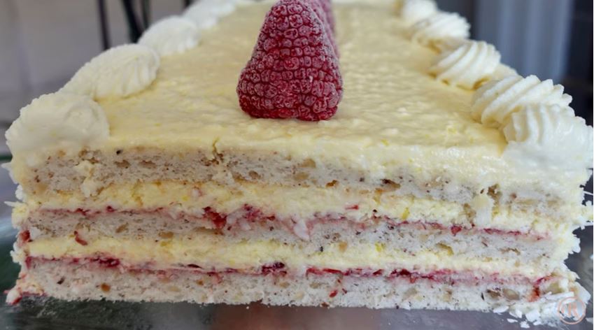 Fantasticna torta sa kokosom, bademima, bijelom cokoladom i malinama!