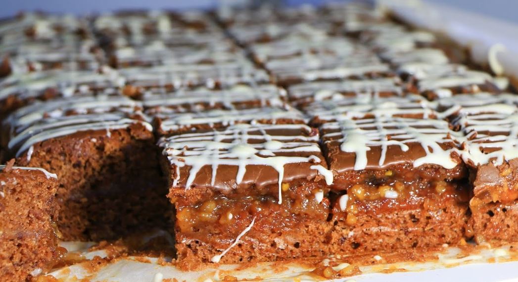 Polovinu testa istresite u tepsiju i pecite oko 10 – 15 minuta. Izvadite iz rerne pa prelijte rastopljenom marmeladom u koju ste stavili mlevene orahe (orahe ako želite)…Preko marmelade ide ostatak testa ali ga predhodno razredite sa 5 kašika vode da bi se lakše razlilo preko marmelade.