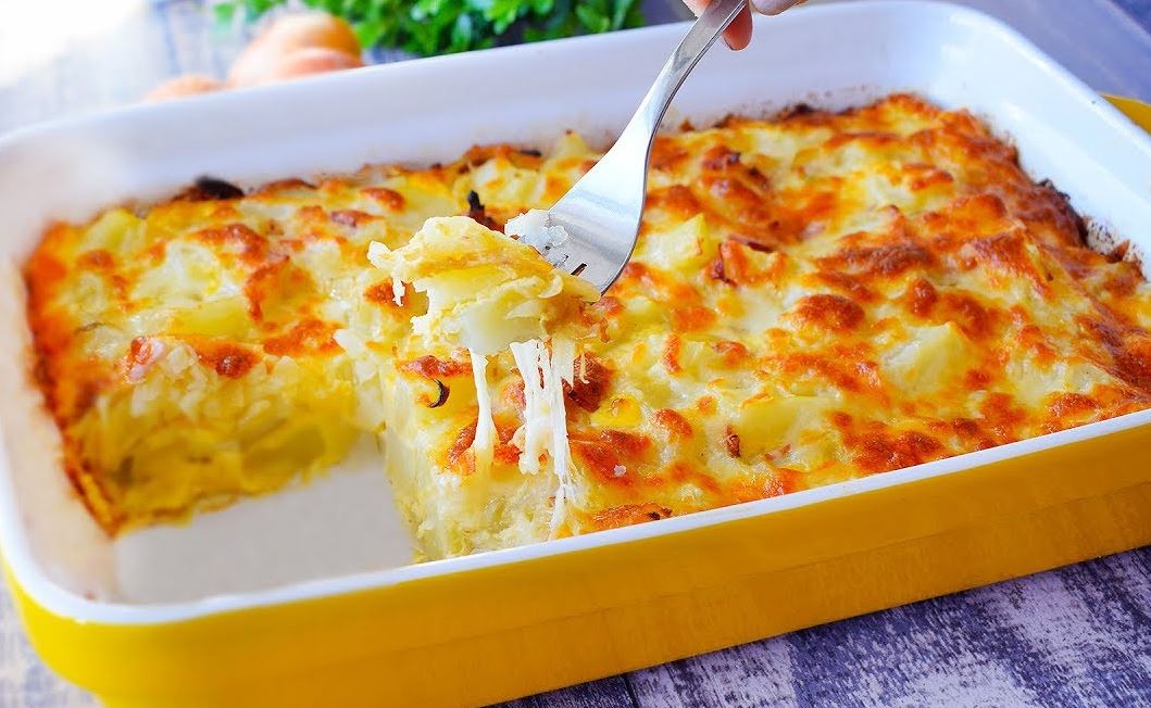 Poređajte krompir, slaninu i sir i zalijte jajima, a onda ispecite.