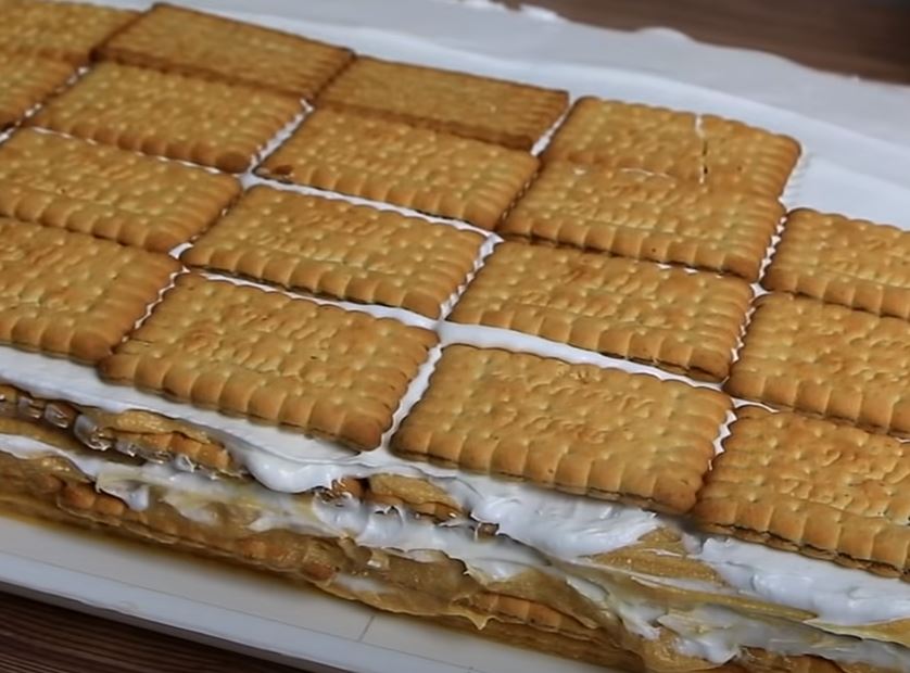 Filujte: keks, fil, šlag, keks, fil, šlag, keks, fil, šlag, keks, fil i umućena slatka pavlaka.