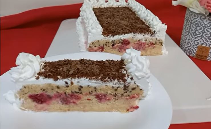 Plazma torta sa malinama i čokoladnim mrvicama-bez kuhanja i pečenja