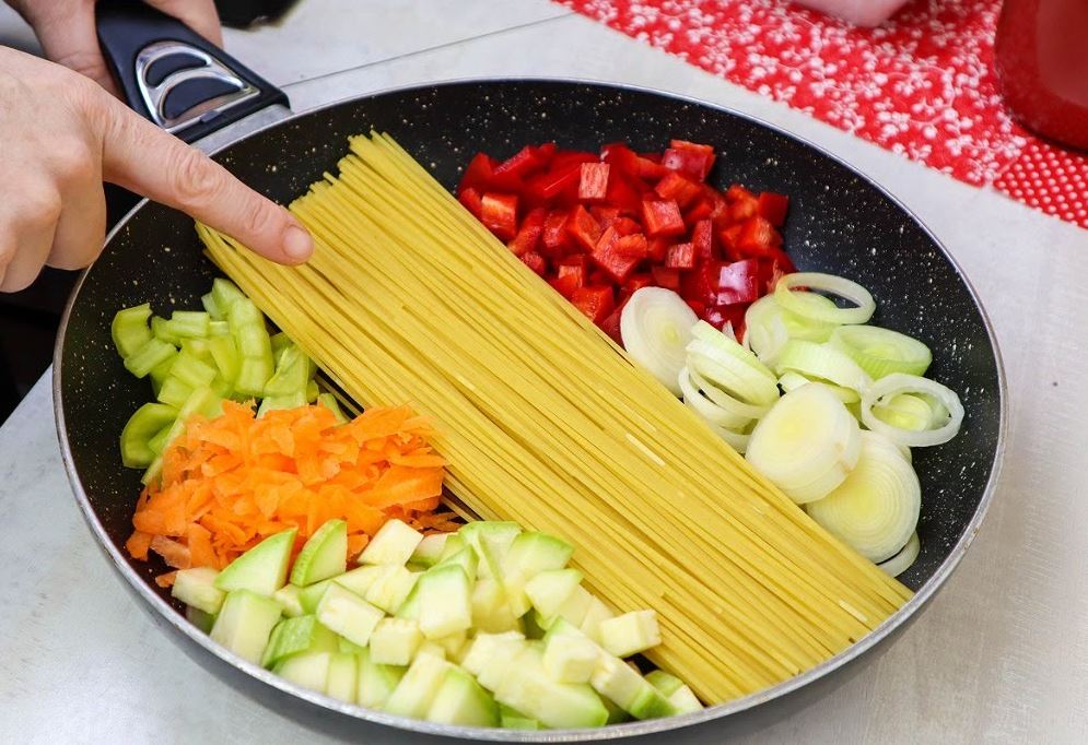 Špagete imaju neverovatan ukus jer su se kuvale zajedno sa svim povrćem. Obavezno isprobajte, mnogo će vam se dopasti. Ukoliko ne jedete meso, izostavite kobasicu.