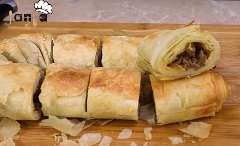Pita sa mesom od gotovih kora (burek). Recept za brzi burek, potkovicu, sa mesom. Lisnata pita od gotovih kora.