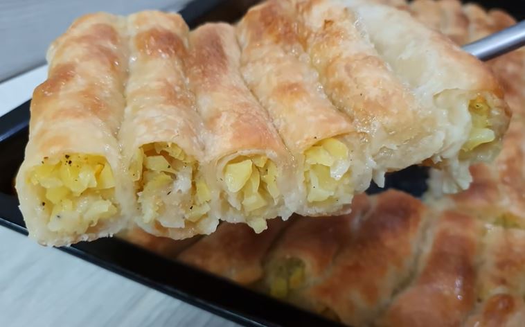 Tepsiju prethodno nauljiti i puniti jufkama koje siječemo po mjeri na prutiće
