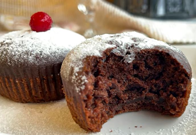 Neodoljivi čokoladni mafini, za čiju pripemu Vam je potrebno 5 minuta. Oduševićete se kako su ukusni, a ne sadrže jaja, mleko, ni margarin(maslac). Mafine možete da pospete šećerom u prahu, čokoladnom glazurom, da poslužite uz sladoled, uz voce… Toplo Vam preporucujem ove mafine.