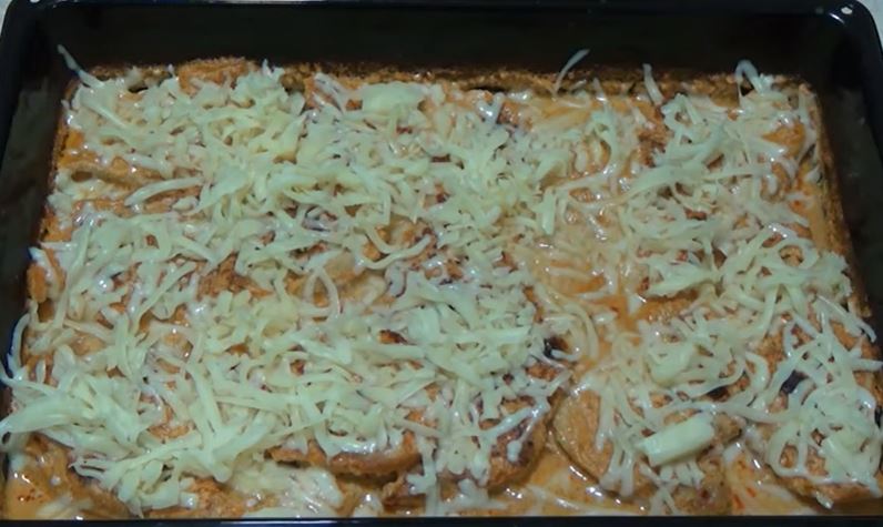Belo meso iseći u tanke šnicle i složiti u pleh. U činiju sipati pavlaku za kuvanje pa dodati so, biber, slatku i ljutu papriku i suvi začin i dobro izmešati i sjediniti. Ovim preliti belo meso. Staviti u rernu zagrejanu na 200 stepeni da se peče od 25 do 30 minuta. Meso izvaditi iz rerne i posuti rendanim kačkavaljem. Vratiti u rernu na istu temperaturu koliko da se kačkavalj otopi i malo zapeče.