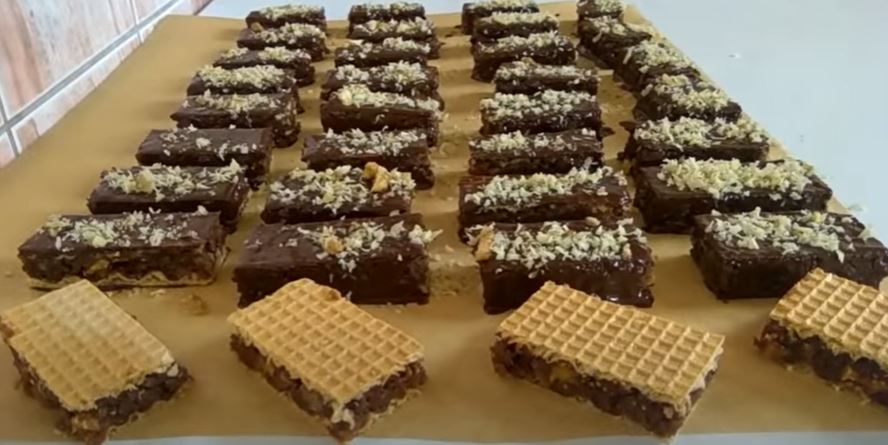 Rastopimo čokoladu sa uljem u koju stavljamo izrezane kockice oblatne.