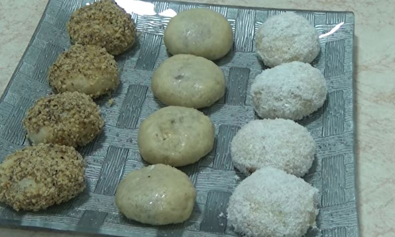 Kolačiće dok su još vrući potapati u preliv, a zatim valjati u mlevene orahe ili kokosovo brašno. Ostaviti kolačiće da se ohlade.