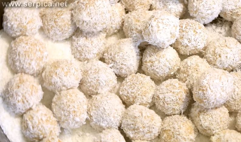 Formirajte male kuglice i svaku uvaljajte u kokos. Prijatno.